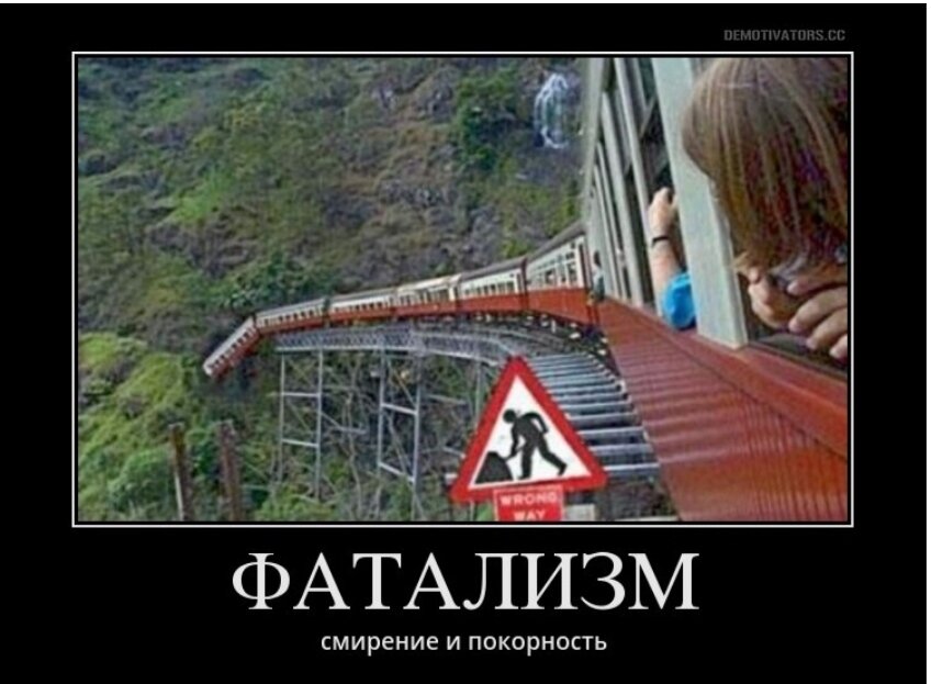 Фатализм – это суеверие, крайне нетипично для нашего века. Ведь сейчас буквально на каждом углу можно услышать оды, воспевающие инициативность, предприимчивость и самореализацию, в такой ситуации человек, полагающийся на судьбу, смотрится крайне странным. Люди, которые все ждут «наступления коммунизма», сейчас могут вызвать у других только смех.