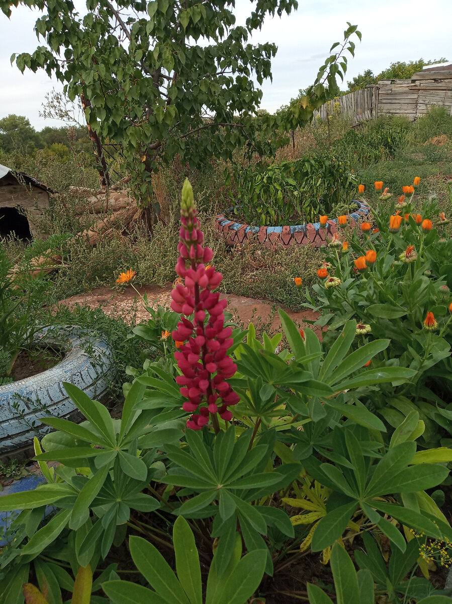 Этот красавчик-люпин, крайне капризный цветок. И из семян пыталась его растить и рассаду покупала, на следующий год ни следа от его многолетия не осталось. Вот этот ленок действительно неприхотлив, разрастается по всему огороду, но в этом году в бешеную жару майскую, очень слабенький. Эти розы, жившие несколько лет, погибли. Красивые были. Этот куст розовый был шикарен и оригинален 5лет. Тоже зиму не пережил. Эти розы тоже устали цвести, наверное. Иначе , что же им помешало весной проснуться? Больше на их фоне фото не будет. Когда-то выращивала гладиолусы , теперь только на старом фото они остались. Надоели.