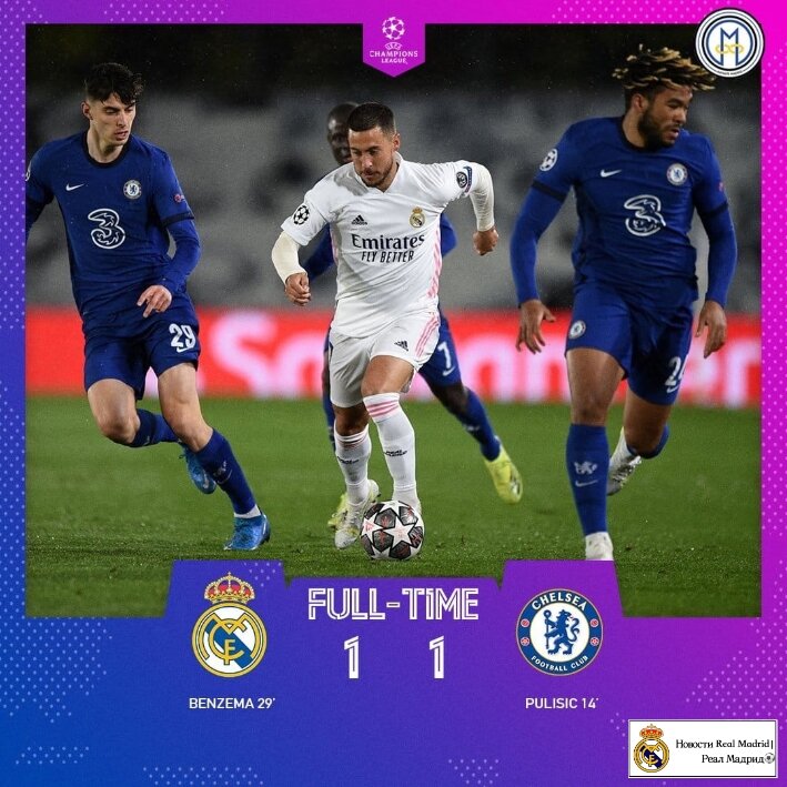 На 23-й минуте Карим Бензема попал в штангу, а через шесть минут сравнял счет. После подачи с углового Каземиро выиграл воздух, скинул на Милитао, который продлил во вратарскую, где мяч уже ждал Бензема: подработал себе мяч головой, и сильно пробил под перекладину с пары метров – 1:1. У Вратаря "Челси" Менди не было ни единого шанса.