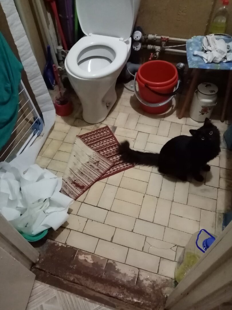 «Человек, ну что ты смотришь на меня так, как будто я размотал рулон туалетной бумаги? Все уже так и было, когда я пришел. И да, кстати, коврик тоже кто-то перевернул до меня, так что не надо тут этих подозрительных намеков»: