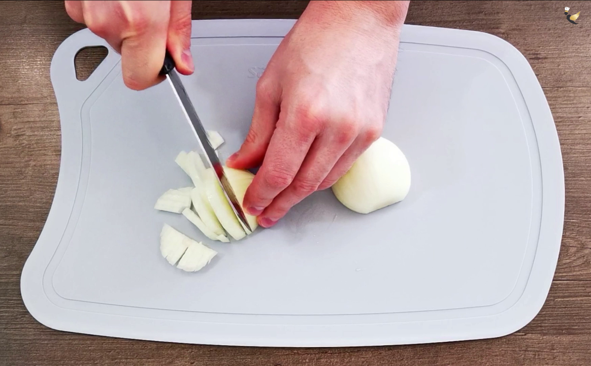 Первым делом нарезаю одну среднюю луковицу мелким кубиком и отправляю обжариваться прям в кастрюлю на растительном масле. Лук пассирую на среднем огне примерно 2-3 минуты, главное чтобы он не сгорел.
