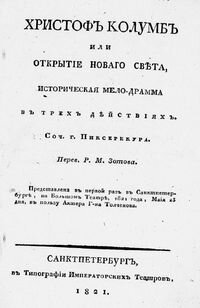 В русском переводе пьеса французского драматурга была поставлена в театре благодаря старанию Зотова. Насколько сама пьеса примечательна в творчестве Пиксерекура — своего рода загадка. Но как воспринял данное творение зритель русского театра? Хочется думать, с весёлым озорством. Если о главном герое действия должно быть известно, всё-таки Христофор Колумб открыл Новый Свет. То прочие лица,