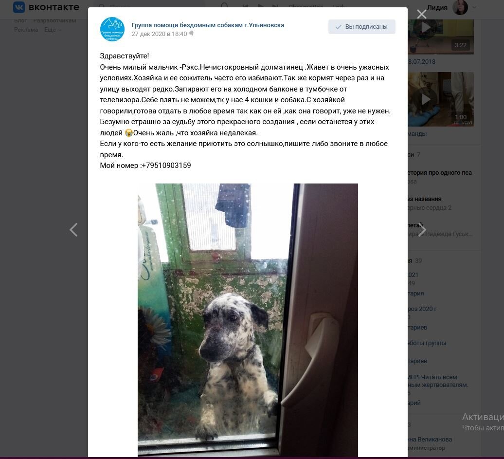 Тощий зашуганный щенок метис далматина был изъят из рук асоциальных личностей. Весь в
