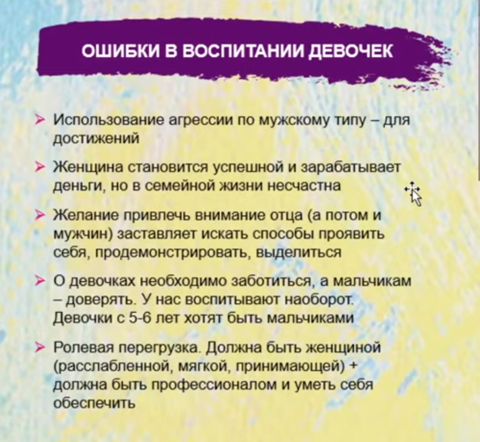Когда родители требуют от девочек достижений, говорят:"ты должна", "надо", вместо того, чтобы о них просто заботиться, получается перекос. Мальчики получают чрезмерно много заботы от всех женщин, которые их окружают, а девочкам