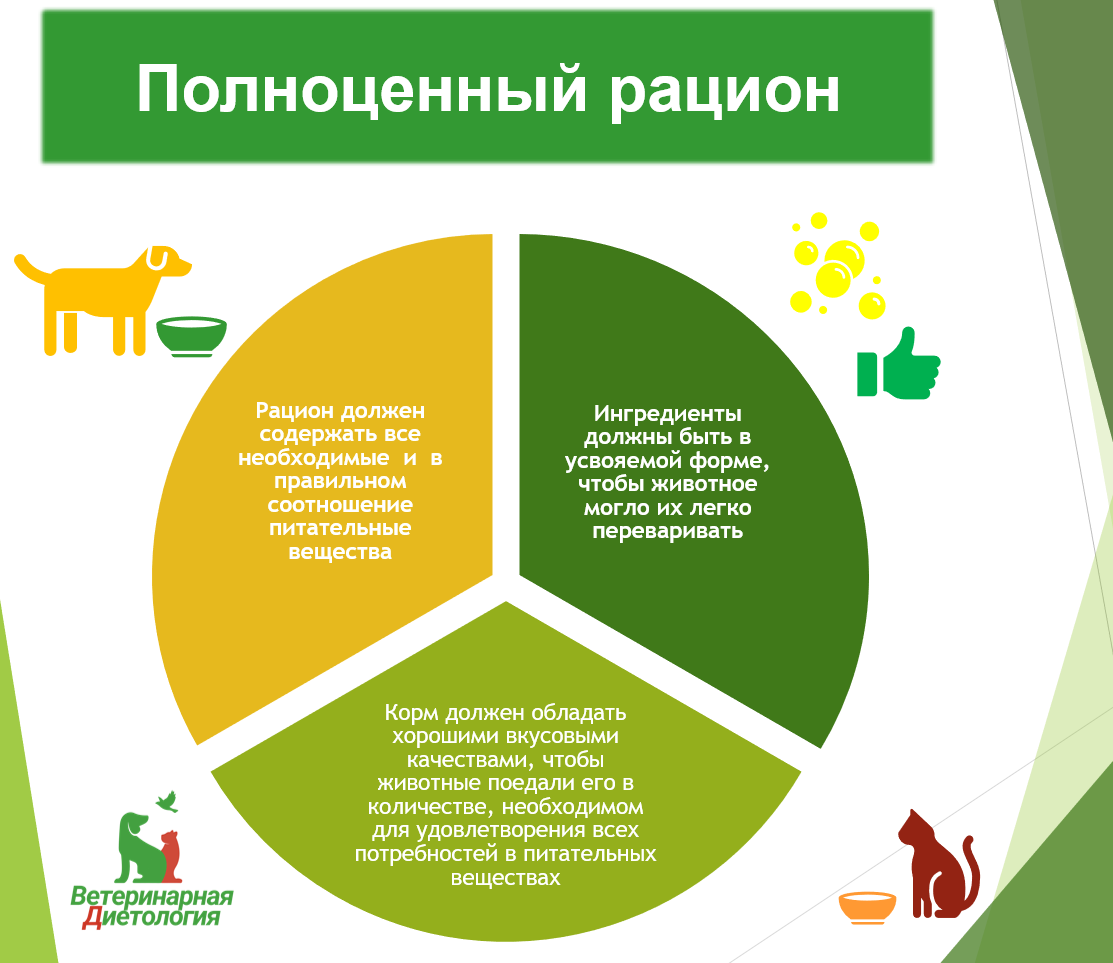 Рацион должен содержать необходимое количество и правильное соотношение всех питательных нутриентов.