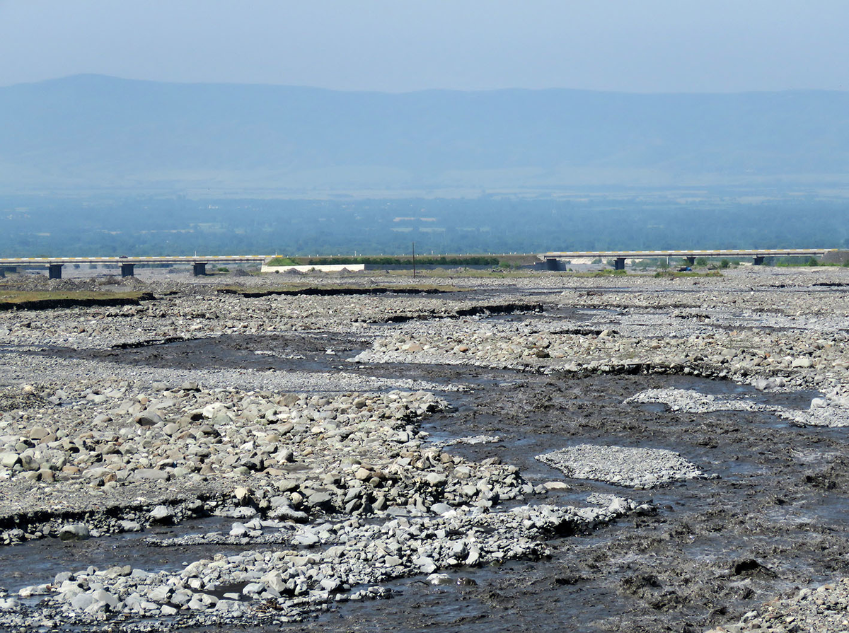 Гах встречает за Курмухчаем, вода которого после ночного ливня стала похожа на бакинский мазут: Прошлый и следующий кадры сделаны навстречу друг другу - в паре километров от современного моста над рекой висит старый Немецкий мост: В отличие от Ленкорани, где его тёзку строили пленные немцы, этот 85-метровый мост был построен немецкими инженерами в 1897 году: Хоть и на второстепенной дороге, он по-прежнему проезжий: Сам Гах, по-грузински Кахи, с 1930 года райцентр, а с 1967 - город, на первый взгляд вполне типичный азербайджанский райцентр с холёными главными улицами и памятником Гейдару Алиеву. Где-то тут есть новая мечеть, которую я не только не заснял, но и не запомнил, а главный колоритом стала проехавшая мимо маршрутка с надписью по-грузински без дубляжа - наверное, в Тбилиси. До него отсюда не близко (около 200 километров да граница), и всё же существенно ближе, чем до Баку. У главной площади нашёлся такой вот очаровательнейший артефакт: И заброшенный грузинский Крестовоздв