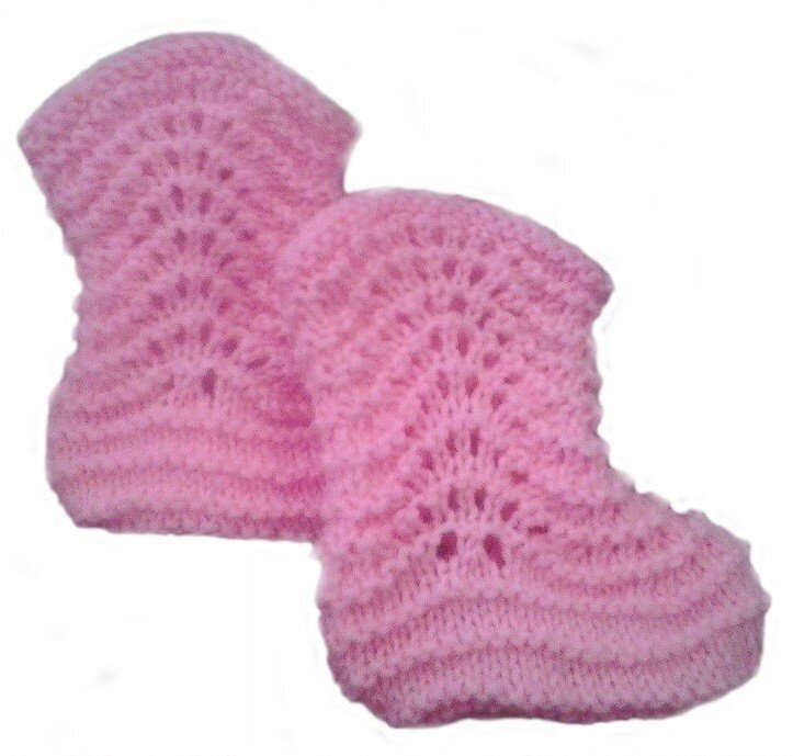 24 ряд: кромочная, 8 лицевых, накид, 3 вместе. лиц (средняя сверху), накид, 8 лицевых, 2 вместе лицевой повторить 10 раз (это убавки для мыска пинетки), 8 лицевых, накид, 3 вместе. лиц (средняя сверху), накид, 8 лицевых, кромочная.