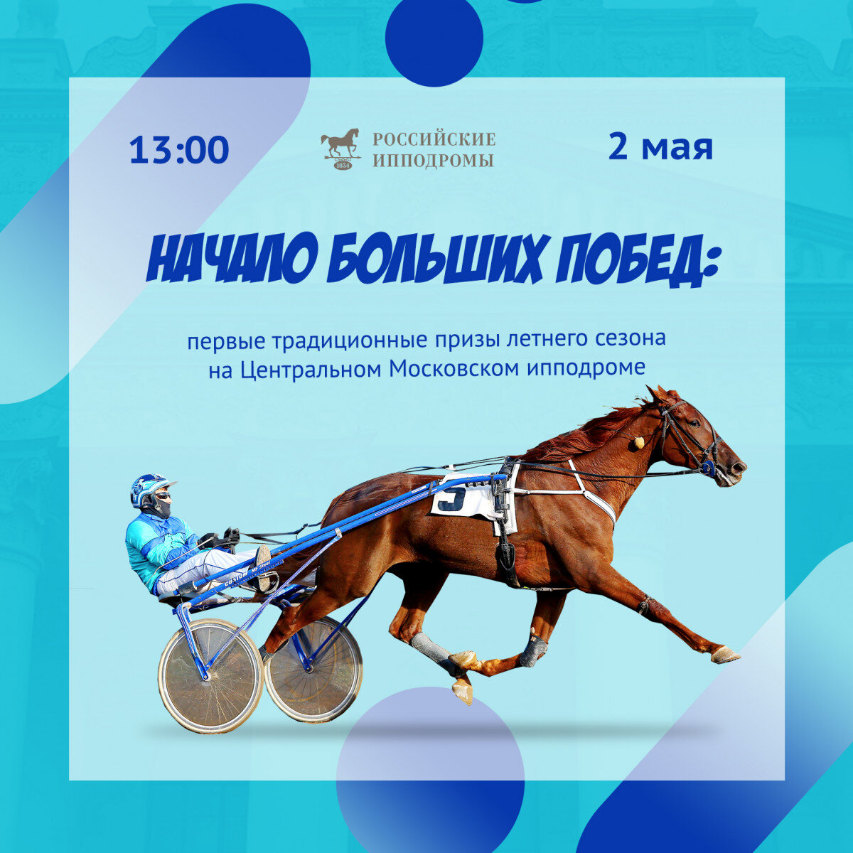 До встречи на Центральном Московском ипподроме и в прямой трансляции на YouTube-канале «Московский ипподром» 2 мая в 13:00!