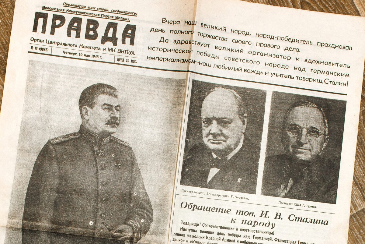 С фотографий газеты, вышедшей на следующий день после дня Победы, на нас смотрят главные лица той эпопеи: И.В.Сталин, У.Черчилль, Ф.Д. Рузвельт, Г.Трумэн, Д.Эйзенхауэр, Б.Монтгомери, Г.Александер, наши маршалы и адмиралы.