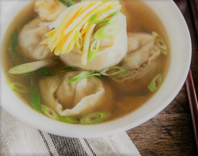 1. Отварить бульон на среднем огне. Добавьте соевый соус и чеснок. Когда бульон закипит, добавьте клецки. Варите суп до полной готовности пельменей. (Если накрыть пельмени размером с гёдза, это займет от 2 до 3 минут, а для больших пельменей - от 6 до 8 минут.)