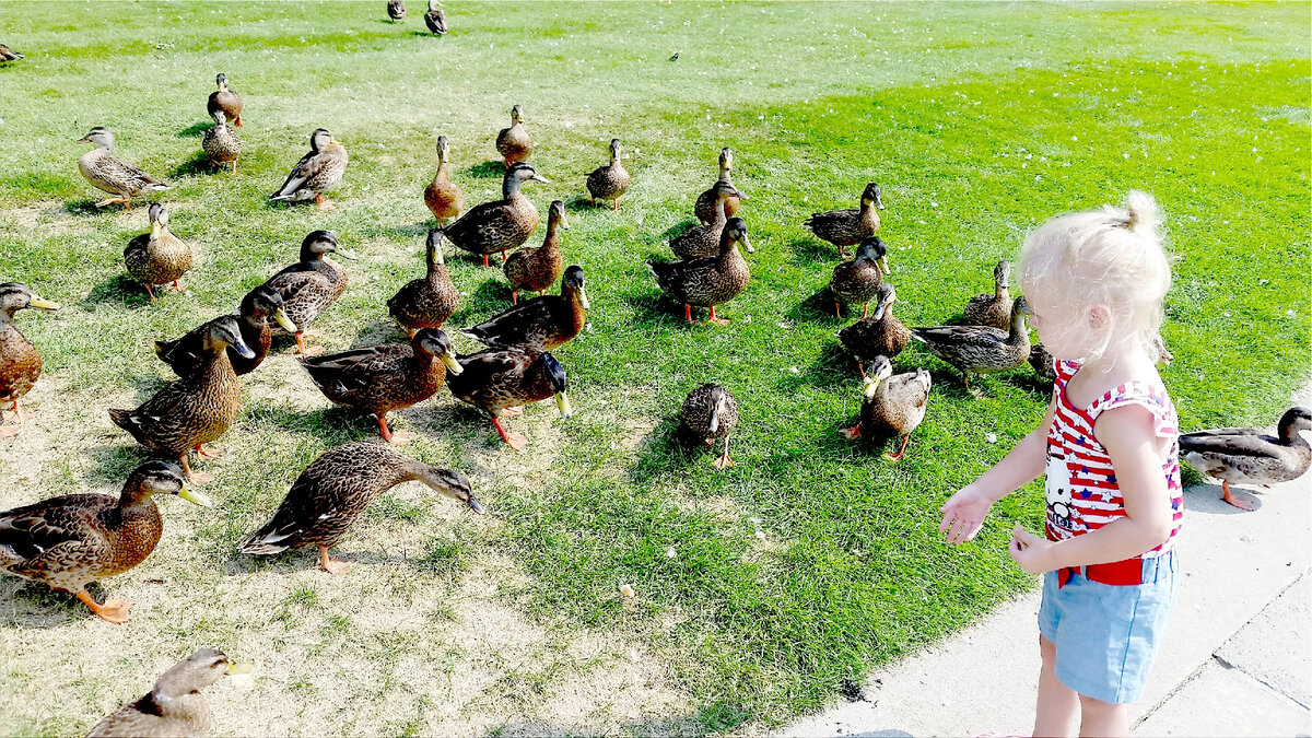 В тот день они кормили, как всегда уток в парке. Рядом с ними стояла забавная девчушка и наблюдала, как утки дерутся за крошки батона, который бросала им Валентина.