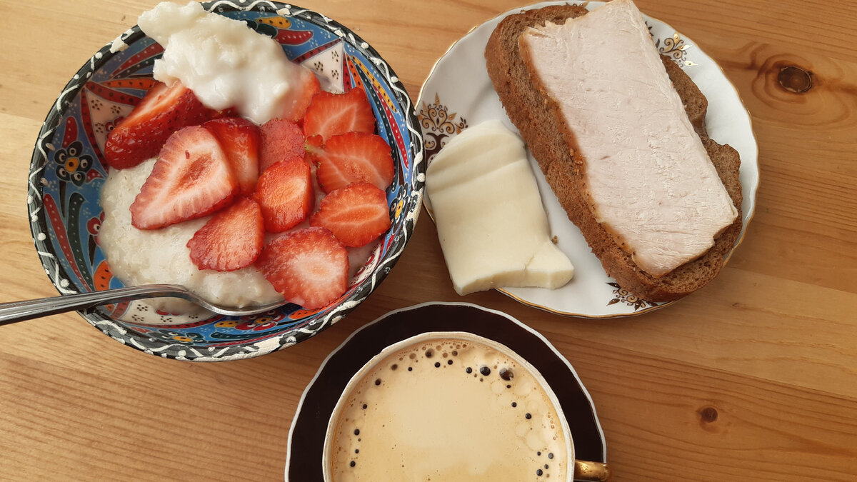 Всем добрый день, дорогие читатели! На завтрак у нас сегодня снова овсяная каша с клубникой, я себе добавила еще ложечку кокосовой манны. Вкусно! Хоть и совсем необязательная опция. Также бутерброд с бужениной, кусочек сыра сулугуни и кофе обедала рисом с отбивной из свинины под сыром, к чаю брала сыр сулугуни и была вкусная шоколадка на работе на ужин - снова свиная отбивная с макаронами. Салат было лень уже делать, пришла поздно с родительского собрания в школе у маленького. Это было первое родительское собрание за год :) Постепенно довела до ума все мясо, которое купила в воскресенье. Часть вот на отбивные пошла, их мы ели два дня. Примерно из 1,2 кг запекла буженину на бутерброды. Половину дети потаскали за один день. 1 кг говядины порезала на гуляш. Из остального сделала фарш. В фарш добавляла только лук, пару морковок и немного булочки, замоченной в молоке. Налепила котлеты, 17 шт получилось. И из остатков сделала маленькие фрикадельки - для супа на 1 раз. Это все нам пойдет уже