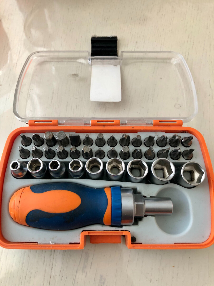 Этот пост будет ещё про один инструмент который необходимо иметь в домашнем хозяйстве, ну или в обычной квартире. Как видели несколько постов назад я написал про мультитул, которая тоже хорошая вещь в обиходе дома да и не только дома, на пикнике или на рыбалке или на охоте. Но для дома или для машины чтоб сделать небольшой ремонт или подкрутить что-то или открути что-то в машине,( я обычно откручивал аккумулятор, или магнитологу в машине когда заказывал дополнительные аксессуары на АлиЭкспрессе ) и этот набор мне реально помогал да и помогает. А дома я собирал компьютер когда покупал и копил на каждые комплектующие к нему. Но не только компьютер или машина в основном используется этим набором, иногда домашние дела там повесить телевизорное крепление, отрегулировать дверки шкафа и так далее ну в общем прикольный наборчик для домашнего обихода. Он состоит из бит из головок. У него маленький компактный чехол который поместится в каждый шкафчик или в каждую тумбочку и его не нужно буд