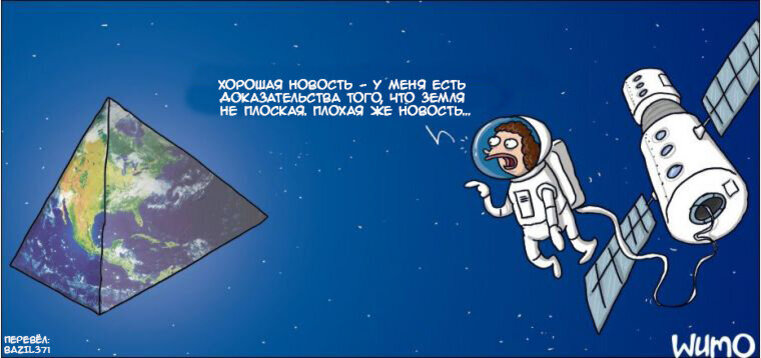 Еще один комикс по поводу неоспоримых доказательств того, что наша планета круглой формы и взгляда из космоса, только теперь от Prolific Pen Comics. Отличная иллюстрация совета о том, что глупых людей стоит держать подальше от себя.