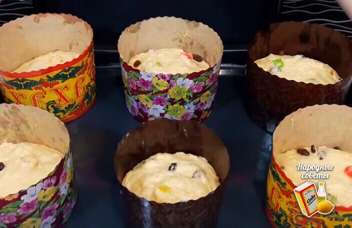 После формочки с тестом оставляем на растойку на 20-25 минут, а затем отправляем в духовку на 30-35 минут (температура 180 °С).