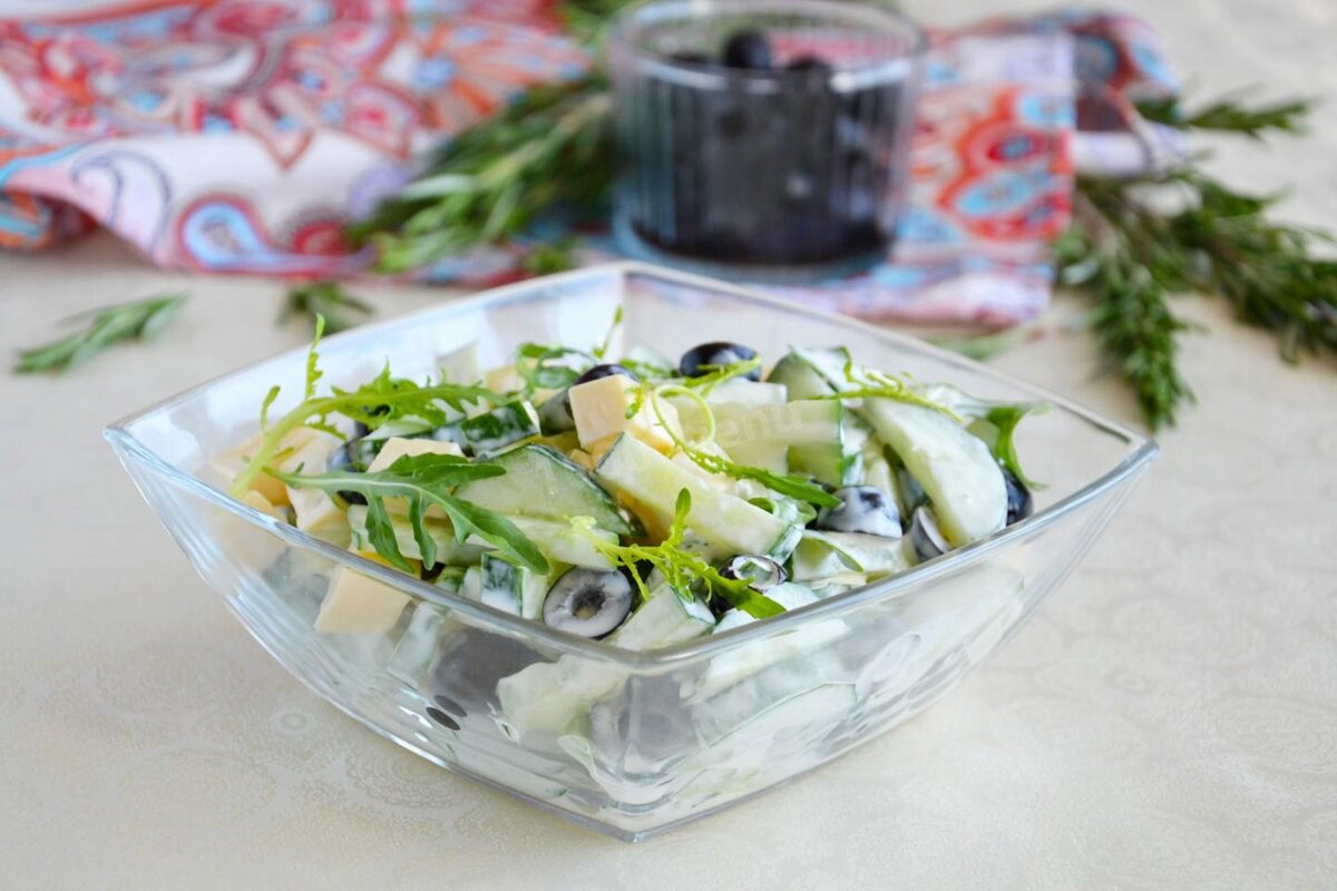 5 рецепт "САЛАТ С СЫРОМ И СВЕЖИМ ОГУРЦОМ С РУККОЛОЙ"