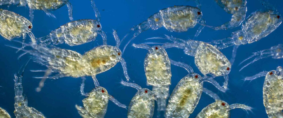 Микроскопические водоросли являются первопищей для всех водных организмов. Как уже отмечалось, их размер не превышает несколько десятков микрометров. Этими водорослями питаются ракообразные. Среди них наиболее известен криль, куда входят эвфаузиевые раки размером до 1,5 см. Рачков поедают рыбы-планктофаги, а их, в свою очередь, более крупные рыбы. Крилем питаются киты, которые отфильтровывают их в огромных количествах. Так, в желудке голубого кита длиной 26 м нашли 5 миллионов этих рачков.