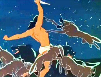 Весть о том, что незнающие пощады красные собаки Дхоли хотят захватить джунгли, быстро разнеслась повсюду, сея страх и панику среди зверей. Только волчья стая, свободный народ, не испугалась кровожадных псов и приняла бой. По совету Каа Маугли ведет за собой полчища Красных собак к ущелью, по которому протекает река Вайнгунга. Ущелье это - обиталище Маленького Племени - диких пчёл. Свирепые пчёлы до смерти жалят всех, кто нарушит их покой. Многие Дхоли нашли там свою смерть. Но и тех, кто выжил, осталось немало. Это была битва! Не жалея сил и клыков волки отчаянно сражаются за жизнь стаи и всего живого в джунглях. Наравне со всеми Маугли, не зная жалости, бьёт незваных захватчиков: