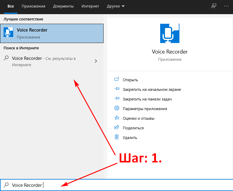 Шаг 1: используйте значок поиска рядом с кнопкой «Пуск» в Windows 10, чтобы найти программу Voice Recorder.