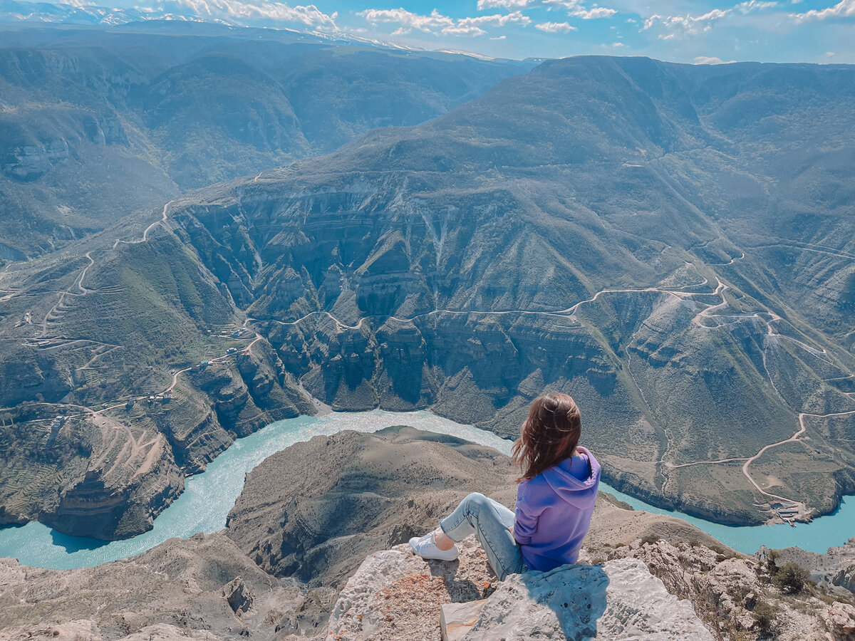 Дагестан- это самый многонациональный регион страны. Здесь проживает около 40 национальностей, часто они не понимают язык друг друга, поэтому используют русский. В своем путешествии вы скорее всего встретите аварцев (именно они живут в горных регионах), азербайджанцев (их много в Дербенте и на юге Дагестана), лезгинов, лакцев и даргинцев. Я посетила за свое путешествие несколько районов. Начало рассказа вы можете почитать здесь. На Скулакском каньоне мы остановились ночевать в селе Забутли, там есть всего пару гостевых домов. Гостевой дом "Ласточка" с самым красивым видом на каньон с балкона. Утром я прогулялась по поселку до лодочной станции, людей там еще не было. Но я пообщалась со всей местной живностью. Нас ждал вкусный завтрак с пышками, блинами и домашним сыром. Потом мы отправились с теми ребятами, которые нам указывали вчера дорогу, в Махачкалу. Мы заехали на смотровую ГЭС. Там совсем не было людей, видимо, экскурсионные маршрутки туда не заезжают. Проехались вдоль Черкейского