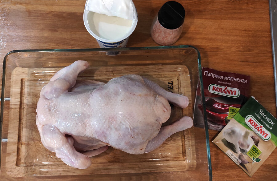 Максимально простой рецепт для тех, кто не любит тратить время на готовку! Вам понадобится тушка курицы, упаковка сметаны 20-25% жирности, яблоки, которые завалялись в холодильнике и пара-тройка картофелин. Тушку курицы я обмазываю сметаной во всех сторон, солю, перчу и "чесночу". Использую копченую паприку, как приправу. Она дает аромат дымка. Яблоки режу крупными дольками, иначе они расплывутся, вырезаю сердцевинку. Кладу яблоки к курице. Нарезаю крупными дольками картофель, укладываю также в форму Добавляю немного приправы для картофеля Запекаю в духовке при 200 градусах примерно час Приятного аппетита!