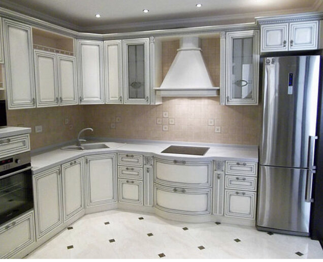 Кухни в классическом стиле в СПб Классический стиль кухни и интерьера в целом актуален во все времена и никогда не забудется, выражая хороший благородный вкус, достаток и семейные традиции. Классика в кухонной мебели так же бывает разной: от темных до светлых тонов, от ажурной до более спокойной и простой, от пышной торжественности до более узкого круга людей и семейного уюта. В большинстве случаев классические кухни требуют средних и больших кухонных пространств, поскольку стиль выражается не только в самом гарнитуре, но и его сочетании с остальной кухонной обеденной мебелью. Классика в мебели - это не только белые или темные гарнитуры с изящными золотыми линиями, но и бежевые, зеленые, коричневые тона. Классические стили более требовательные к пространству, симметрии и некой воздушности, что и создает определенный шарм и элегантность