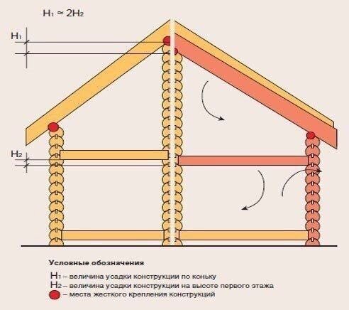 Усадка деревянного дома: что такое усадка дома и современные методы борьбы с ее последствиями Усадка бывает механической и естественной. Механическая вызвана давлением, которое верхние бревна оказывают на нижние. Иными словами, дом проседает под собственной тяжестью. А естественной усадкой называют изменение размеров древесины в связи с ее усыханием. Если с "механикой" можно справиться с помощью специальных устройств, то с природой дерева бороться сложнее. Существует ГОСТ 6782.1-75, регламентирующий усушку древесины из хвойных пород, но чаще всего он не применяется, потому что величина усадки зависит от типа материала – к примеру, у оцилиндрованного бревна и клееного бруса она будет разной. Большое значение имеют размер бревен и брусьев, их длина и ширина. Свою роль играет и влажность, порода древесины, а также время года, когда дом собирался. Оседают деревянные постройки неравномерно: с южной стороны быстрее, с северной медленнее. Коньковые и фронтонные стены садятся быстрее и сильнее