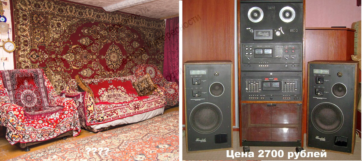 Можно даже составить рейтинг самых неудачных вложений денег мажоров СССР. Пройдет совсем немного времени и то, что можно было достать с великим трудом, уже станет даром никому не нужным. Желание демонстрировать окружающим свое богатство у людей было всегда и даже социалистический строй с этим ничего не смог поделать. Так появилась категория товаров "предметы роскоши", которые в торговлю шли с приличной торговой наценкой. За счет них, в том числе, субсидировалась категория "предметы первой необходимости", где цены устанавливались по себестоимости и ниже. Пожалуй самым популярным из "предметов роскоши" был ковер. — Граждане новосёлы! Внедряйте культурку! Вешайте коврики на сухую штукатурку! Никакого модернизма! Никакого абстракционизма! Спасает стены от сырости, вас от ревматизма! Налетай, торопись, покупай живопись! (фильм "Операция Ы") Надо отдать должное, ковры тогда были хорошего качества и из натуральной шерсти. Небольшой ковер стоил 300-400 рублей. Формат "на всю стену" уже обхо