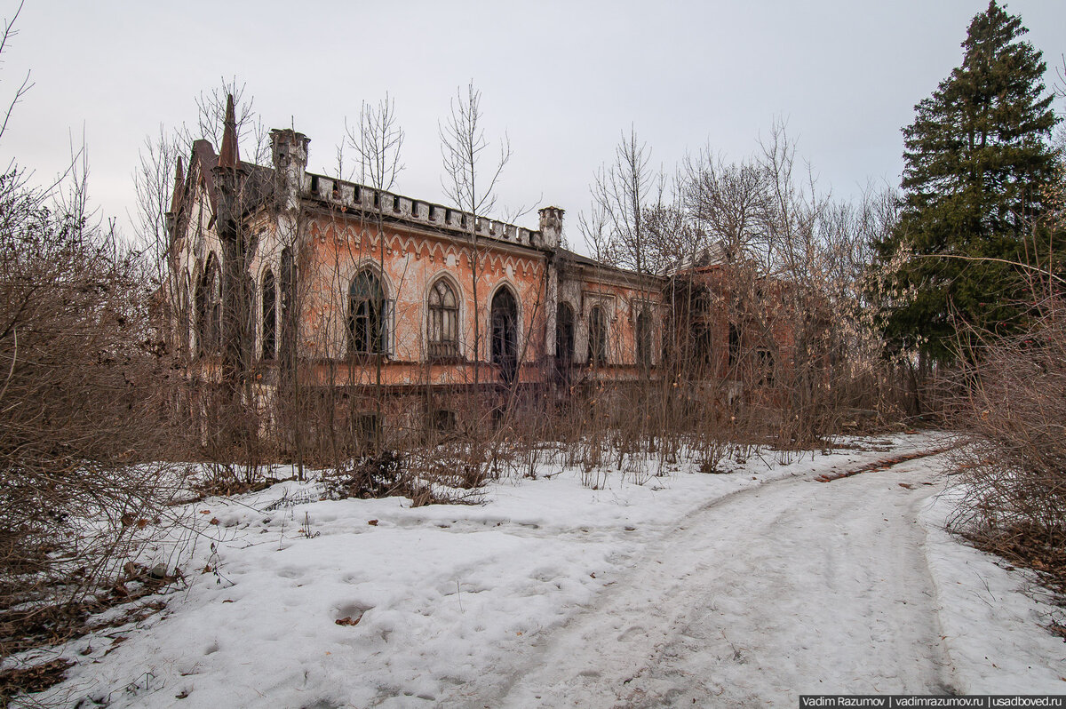 Она очень остро нуждается в новом заботливом хозяине. Благо, натура усадьбы, её шикарный парк и эффектное расположение, создают ей большой инвестиционный потенциал. Только посмотрите, как красив усадебный парк ранней весной! Старинные аллеи и дорожки, возвышающиеся над крутым берегом Быстрой Сосны, просыпаются от зимнего сна. У корней вековых дубов и лип драгоценными сапфирами светятся куртинки пролесков. Нежный аромат весны оживляет заброшенную усадьбу и будто бы "смягчает" её мрачноватый готический облик.