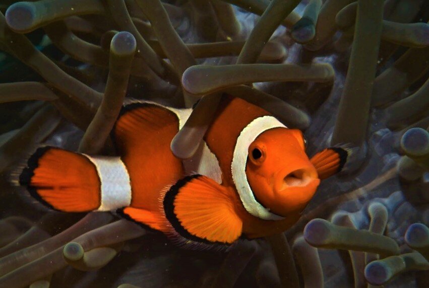 Амфиприон - другое название рыбы-клоуна. Рыбка эта весьма известна во всём мире, в основном благодаря мультфильму "В поисках Немо". По форме она округлая, сплющенная с боков, средний размер тела 16 сантиметров, но если держать её в аквариуме, вырастает не больше 10 сантиметров. Продолжительность жизни составляет 5 лет, однако в том же аквариуме способна прожить вдвое больше. Жить предпочитают группами от 10 до 20 особей. Интересно, но во главе группы всегда стоит самка. Вернее доминирующая пара из крупной самки, самца поменьше и остальных ещё более меньших самцов. Неожиданным фактом является и то, что все рождающиеся мальки - это самцы, которые к тому же являются протандрическими гермафродитами. Смысл этого пугающего словосочетания в том, что если в стае случилось несчастье, например, умерла самка, то самец может сменить пол. Первым кто открыл и описал рыбу-клоуна стал Жорж Кювье ещё в 1830 году, но пик популярности у аквариумистов приобрела после выхода мультфильма о Немо. Самой интер