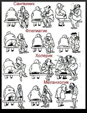 Существует 4 традиционных типа темперамента, причем каждый человек в процессе жизнедеятельности каждый делает несколько переходов, причем в разные периоды времени темпераменты могут быть кардинально противоположными. Описание темпераментов человека: Меланхолик. Самые ранимые и впечатлительные люди, которые отличаются податливостью во многих делах в жизни. Флегматик. Лучшие исполнители, а также идеальные сотрудники в любой психоэмоциональной работе. Данный вид темперамента весьма популярен у творческих людей, а также научных деятелей. Сангвиник. Такой темперамент не дает человеку сидеть на месте, если ему это не нравится. Обладает повышенной живостью и интересом ко всему, причем довольно легко мирится с любыми неудачами и недоразумениями. Холерик. Эдакий человек-мотор, который просыпаясь утро начинает что-то делать, а прекращает уже в момент ухода в сон. Такие люди могут делать много различных вещей, причем вся работа будет очень продуктивной, но только ему надоест, он бросит ее, при эт