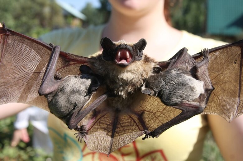 Летучие мыши: Этих существ можно встретить во многих частях света. Летучие мыши живут в городах, пустынях, лугах и лесах. Существует более тысячи двухсот видов летучих мышей. Самая маленькая летучая мышь в мире родом из Юго-Восточной Азии. Летучая мышь-шмель имеет длину около тридцати миллиметров. Самая большая летучая мышь в мире, гигантская летучая лисица с золотой короной, имеет размах крыльев в полтора метра. Большинство летучих мышей едят насекомых, но многие питаются фруктами или нектаром цветов. Многие думают, что летучие мыши слепы, но это неправда. Многие виды обладают очень хорошим зрением. Большинство летучих мышей общаются и находят свой путь, издавая «эхолокационные» звуки. Они производят высокочастотные шумы и могут оценивать расстояние до объекта, используя отраженное им звуковое эхо. Итак, пока летучие мыши могут путешествовать в полной темноте, они «видят» с помощью звука. К сожалению, летучих мышей боятся и неправильно понимают. Большинство летучих мышей выходят из св