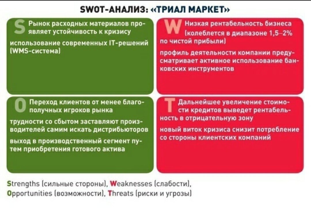 7 ШАГОВ ПРОВЕДЕНИЯ SWOT-АНАЛИЗА Шаг 1. Опишите базовые цели организации или проекта, проясните причины развития этого направления, обсудите мотивы движимые вами. Шаг 2. С помощью стикеров зафиксируйте сильные и слабые стороны организации, ответив на вопросы. Примеры вопросов: Сильные стороны. Чем мы сильны в технологиях? Какие сильные стороны у нашего персонала? Какая сильная сторона нашего бренда? За что нас любят клиенты? Что мы умеем делать хорошо? Что позволяет нам развиваться? Что является стержнем нашей компании? В каких еще сферах мы большие молодцы? Слабые стороны. Что мешает активному развитию компании? Что мешает реализовывать инновации? В чем мы пока слабы? В чем отсталось наших технологий? В чем недостатки нашего маркетинга? Какие ошибки мы совершаем? Шаг 3. Сгруппируйте полученные результаты. Дайте группам названия. Обсудите полученные результаты. Запишите выводы на отдельном листе. Шаг 4. Риски. Вспомните слабые стороны, какие риски они влекут за собой? Что может