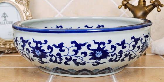 Попытаемся разбудить у Вас немного патриотическо-культурных чувств... Раковина под гжель способна привнести в любую ванную комнату кусочек классического русского стиля, известного далеко за пределами страны. Эта модель отличается необычным, но в тоже время классическим дизайном, который приковывает к себе внимание с первого взгляда. Несмотря на то, что немало времени было уделено непосредственно созданию стиля раковины, она не потеряла ни капли функциональности. Будучи изготовленной из керамики со специальным покрытием, она практически навсегда сохранит свой рисунок, а также прослужит в течение очень многих лет. Самым необычным элементом этой раковины можно назвать роспись в виде гжели. Она покрывает практически всю поверхность модели, как внутри, так и снаружи. Узоры нанесены практически всюду, даже на широкие края раковины. При этом там наблюдается необычная инверсия – роспись выполняется белым цветом, а бортики наоборот полностью окрашены в глубокий голубой оттенок. Несмотря на то,