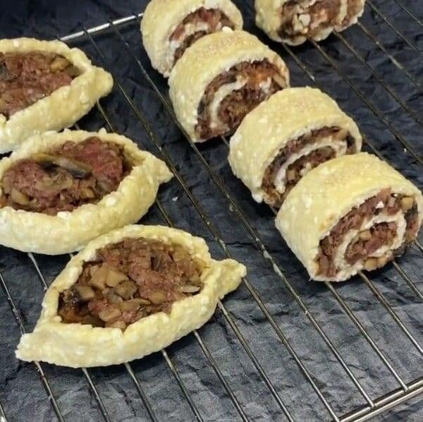 Это что-то невероятное. Тесто получается нежное и воздушное, а начинка никого не оставит равнодушным ☺️ Для теста: 🎯Творог 5% 400 г 🎯Мука (у меня рисовая) 200 г 🎯2 яйца 🎯Разрыхлитель 1 ч.л 🎯Соль по вкусу Для начинки: 🎯Фарш говяжий 300 г 🎯Шампиньоны 200 г 🎯Лук 🎯Специи по вкусу В творог добавляем 2 яйца, перемешиваем до однородности. Добавляем муку, соль и разрыхлитель. Вымешиваем послушное тесто, убираем в холодильник на 15-20 минут. Для начинки режем грибочки и тушим вместе с луком. Добавляем к фаршу и перемешиваем. А теперь творим ☺️ Для лодочек формируем шарики из теста, раскатываем. Выкладываем начинку и фиксируем края, чтобы получились бортики. Для рулетиков раскатываем тесто и выкладываем начинку. Заворачиваем в рулет, разрезаем порционно. Выкладываем на противень, смазываем желтком, посыпаем по желанию кунжутом. Выпекаем при 180° 30-40 минут. Наслаждаемся 🤤 КБЖУ 170/12,9/6,8/14,2 на 100 г Пишите в комментариях как вам рецепт и делитесь со своими друзьями!
