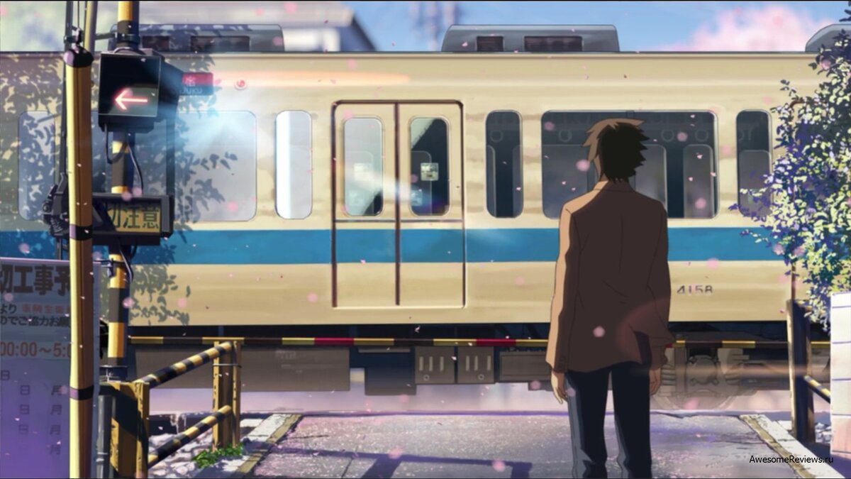 5 сантиметров в секунду. В конце этого замечательного аниме мы видим главных героев Такаки и Акари. Они проходят мимо друг друга. Такаки узнаёт Акари и оборачивается ей в след. Он увидел что и Акари узнала его и тоже оборачивается. Но встречу их взглядов прервали проехавшие перед ними поезда. После того как поезда отъехали Такаки все еще стоял, а Акари уже ушла. Так что это значит? Такаки не смог её отпустить. Вовсе нет. Он смотрел ей вслед что бы убедится, что она ушла и смогла отпустить его самого. После того как он убедился в этом он тоже уходить и понимает что настоло время и ему двигаться дальше.