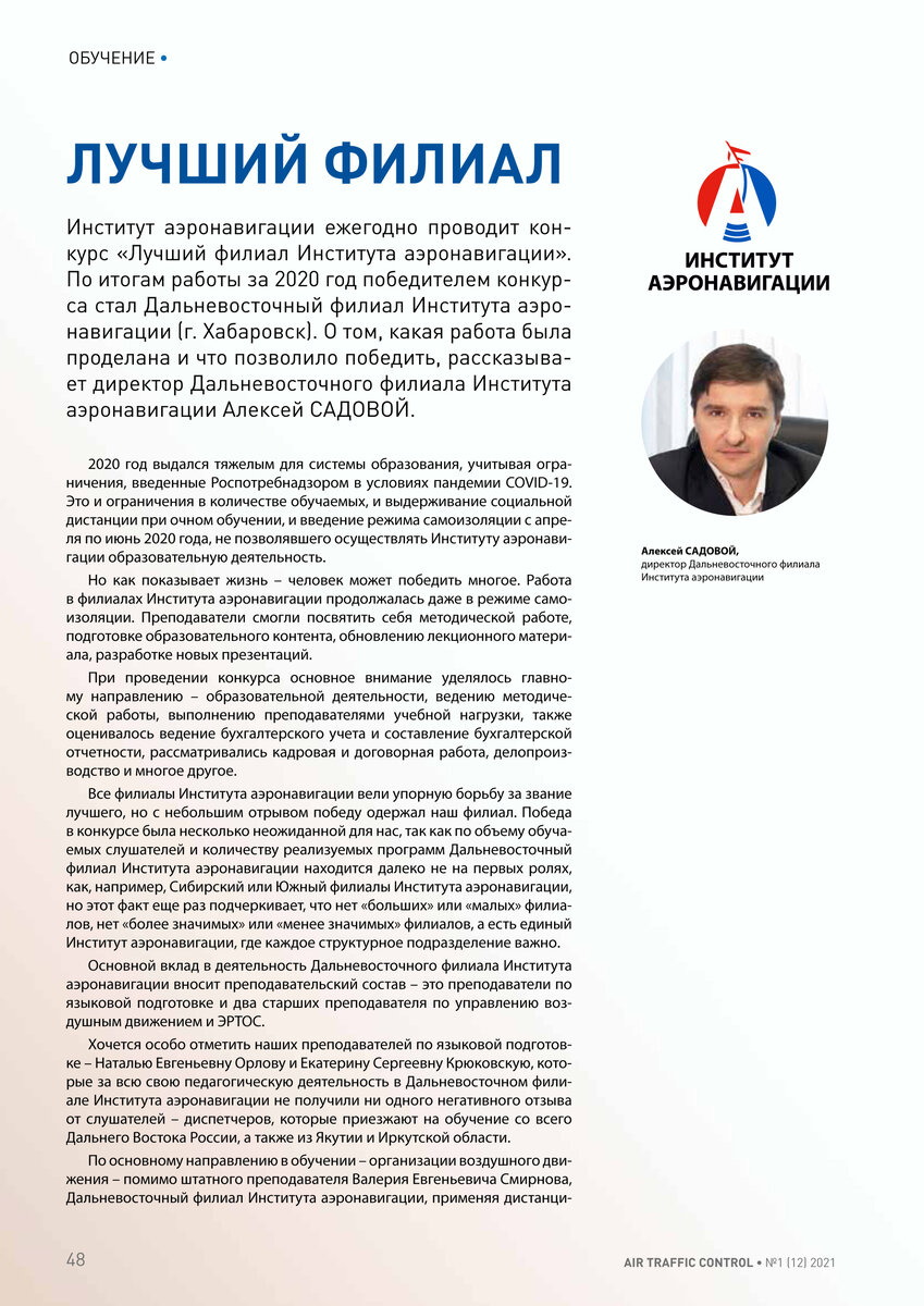 Материалы о конкурсах среди филиалов и преподавателей Института Аэронавигации из журнала Air Traffic Control №1 за 2021 год.