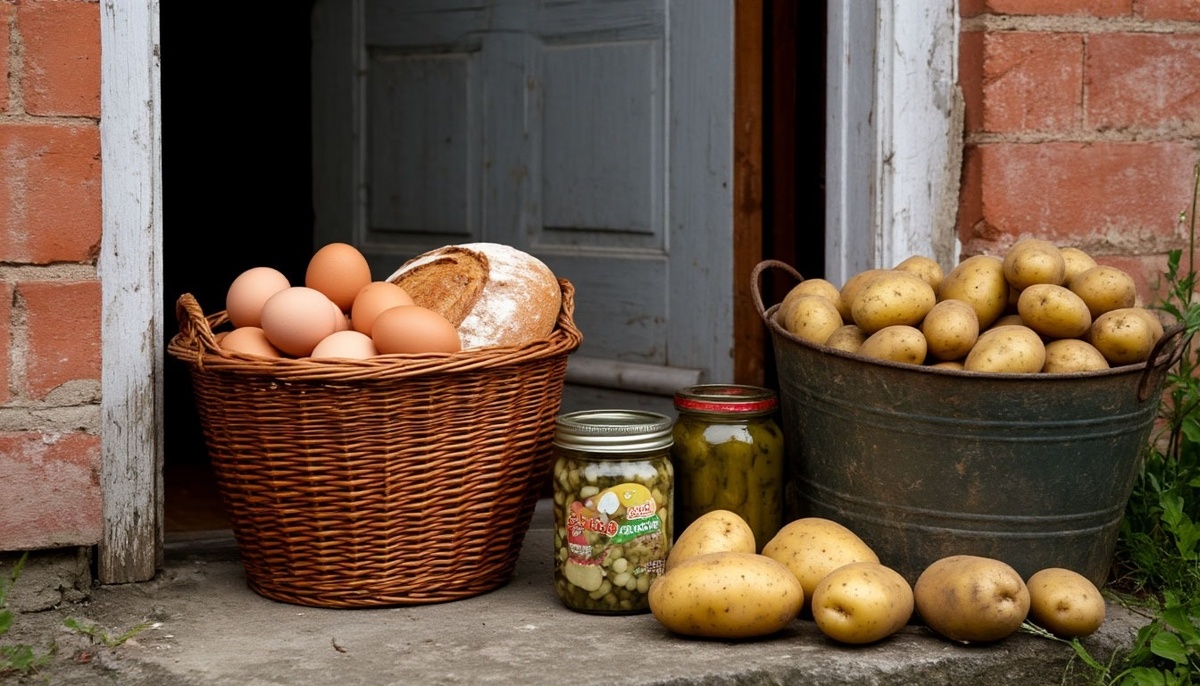 Когда он вернулся, у двери его дома стояла корзинка с яйцами, домашним хлебом и банкой солёных огурчиков. Рядом пристроилось ведро с картошкой. Дядя Ваня не только не забыл про своё обещание, но и перевыполнил его.