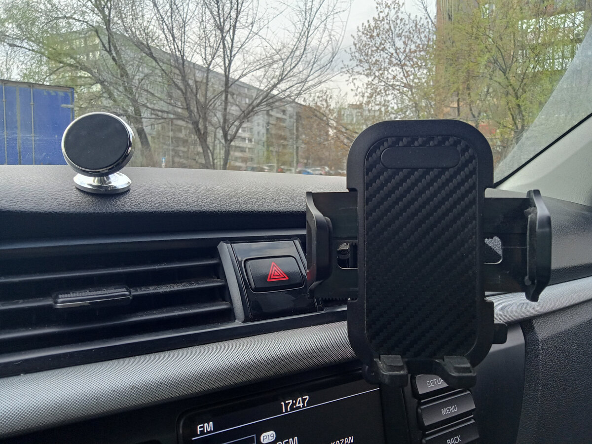 Работая в такси и проводя много времени в машине, меня, конечно, волнует в первую очередь удобство и комфорт. Современный автомобиль оснащен множеством полезных функций, которые отвечают не только последним требованиям безопасности, но и доставляют множество удобств водителю. Например, круиз-контроль, медиаруль, регулировка зеркал, парктроник, система блютуз и т.п. Однако пока ещё не возможно представить свое передвижение без смартфона и навигатора, особенно, если работа напрямую связана с постоянным выходом в интернет. Держать смартфон в руках при этом пытаться рулить и переключать скорость (если МКП) весьма нервное и неудобное занятие. Поэтому мы прибегаем к помощи держателей. За все время работы в такси я перепробовал множество разных вариаций того, как установить телефон и пришел к выводу, что лучше механического держателя ничего нет.