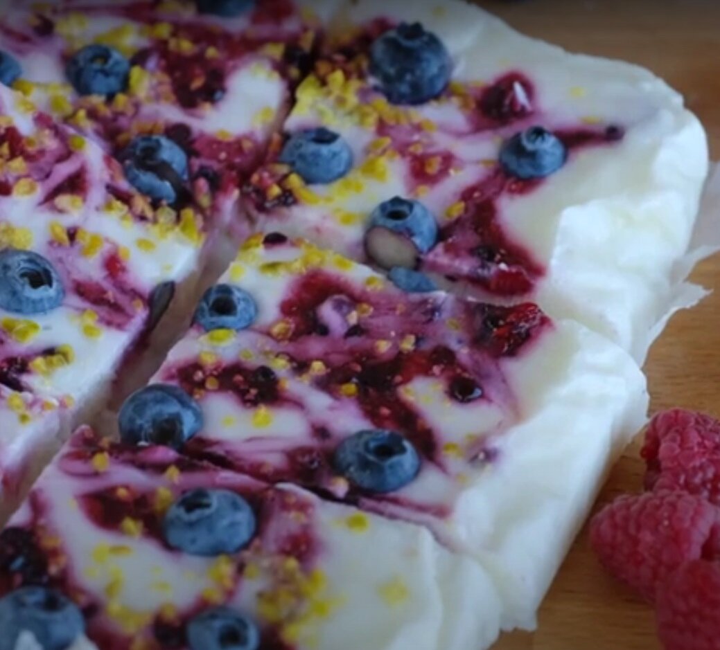 Приготовление: Вылейте йогурт в форму, покрытую пергаментной бумагой (или в силиконовую форму). Малину и ежевику измельчите в блендере до состояния пюре. Выложите пюре чайной ложкой на йогурт неоднородно, не размешивая в йогурте! Свержу добавьте свежую чернику и фисташки. Отправьте в морозильник на 2-3 часа. После этого горячим ножом разрежьте на квадраты. Можно подавать! Приятного аппетита!!! Ингредиенты: Понравился рецепт? Ставьте лайк и подписывайтесь на канал, чтобы ничего не пропустить!