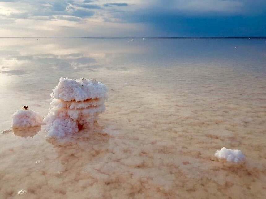 1 - Озеро Эльтон, Волгоградская область Окружённое кольцом белоснежной соли, озеро Эльтон ещё называют золотым дном, потому что из-за водорослей водоём переливается всеми цветами драгоценных камней: от золотого до розового и яркого индиго. Озеро настолько мелкое, что по нему можно буквально ходить: средняя глубина летом всего 5 см. Это великолепная возможность сделать красивые снимки с отражением, создавая иллюзию прогулки по небу. Ещё здесь можно увидеть стаи журавлей и куликов, а если повезёт — застать цветение редких тюльпанов Шренка, занесённых в Красную книгу. 2 - Алмазная шахта «Мир», Якутия Рукотворный алмазный карьер неспроста назвали «Мир»: обнаружив источник, геологи передали в Москву закодированную радиограмму: «Закурили трубку мира, табак отличный». А почему трубку? Всё просто: именно так называются у геологов подобные месторождения. В наши дни шахта уже не действующая, и у туристов есть шанс взглянуть на карьер колоссальных размеров — полтора километра в диаметре! Якуты