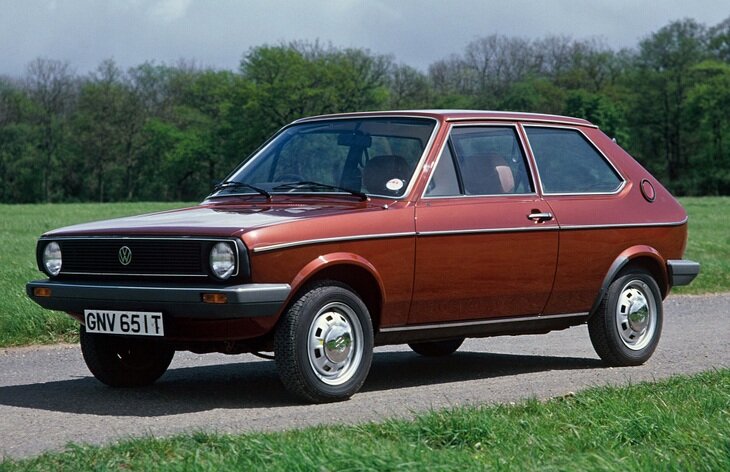 Трехдверный хэтчбек Volkswagen Polo, представленный в 1975 году, был бюджетной версией автомобиля Audi 50. Первоначатьно покупателями предлагалась только одна версия — с 0,9-литровым мотором мощностью 40 л. с. Позднее появились модификации с двигателями 1,1 л (50 л. с.) и 1,3 л (60 л. с.) Также на базе «Поло» был создан двухдверный седан Volkswagen Derby.