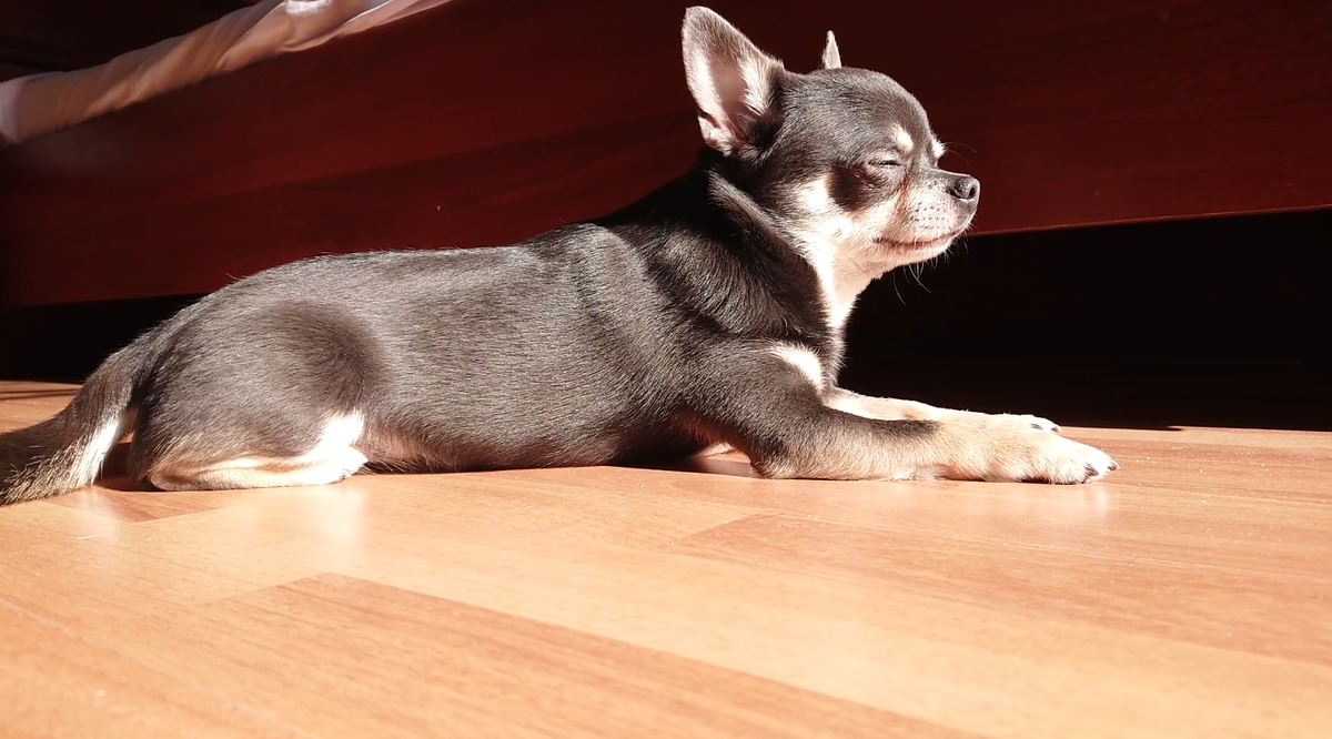 Всем, привет! Знаю, что некоторые напишут об обратном. Но, только те у кого были чихуахуа, будут согласны с тем, что чишки самые милые собачки. Смотрите какой он милый пёсик. Майк развалился на солнышке. Его в эти моменты не волнует ничего. О просто балдеет. Иногда, я могу постелить коврик для тренировок, для того чтобы тоже полежать на солнышке. Это касается зимнего периода, когда находясь у себя дома, позагорать можно только на солнышке, которое заходит к нам через окна в дом. Знаю, что многие животные обожают погреться на солнышке. Однако, за своим хвостатым наблюдать гораздо интереснее. Майку в апреле было 3 года и он продолжает меня удивлять своим поведением, всё взрослее становится, появляются различные привычки. Пока он спит, греясь на солнце, именно в эти моменты, я вижу в нём того щенка размером с ладошку. И не путайте пожалуйста с отношением к подрастающему ребёнку. Нет, это совсем другое. Осознание того, как быстро проходит жизнь собаки. За короткий срок, я увижу Майк от