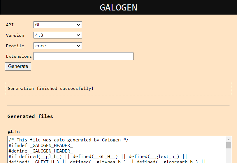 Генератор выдаст вам два файла: gl.h и gl.c.