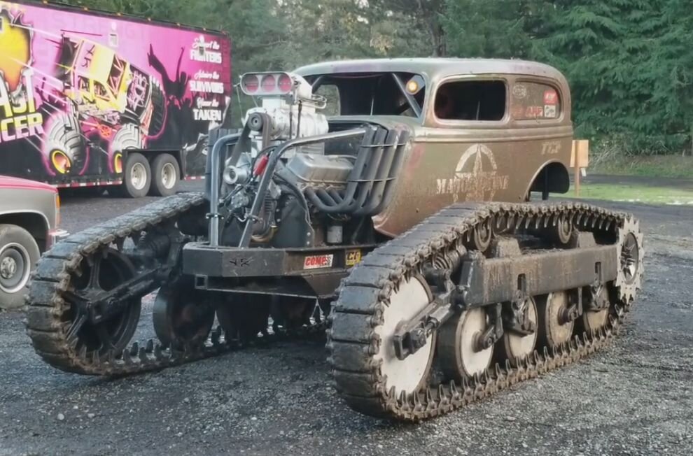 «Майор Пейн» - одна из немногих машин, внушающих опасение даже когда она просто стоит. Эта самоделка из класса так называемых «монстр-траков», но даже не фоне тех многочисленных биг-футов она выделяется своим безумием, ведь вместо огромных колёс тут – гусеницы. «Майор Пейн» смелый настолько, что сокрушает сразу всё – законы физики, топливную экономичность, здравый смысл и чувство прекрасного. Эта машина – творение широко известной в узких кругах мастерской Straight Up Racing. Они делают крутые монстр-траки, но «Майор» стал первой попыткой поставить безумие на гусеничный ход, и первый блин, как говорится, совсем не вышел комом. Скорее наоборот – принес мастерской большую известность. Кузов от старого Форда 1934 года выпуска, установлен на прочную и тяжелую раму, сделанную для проекта, естественно, с нуля. Двигатель, как и положено, установлен спереди, ведущие колёса, простите, звёздочки – задние. Мотор, кстати, известный среди любителей скоростных катеров DART Marine 540cl. В базовой к