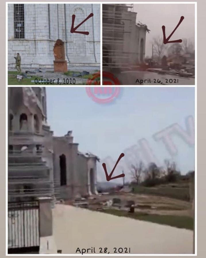 Азербайджанцы разрушили хачкар во дворе храма Святого Христа Всеспасителя Казанчецоц в Шуши