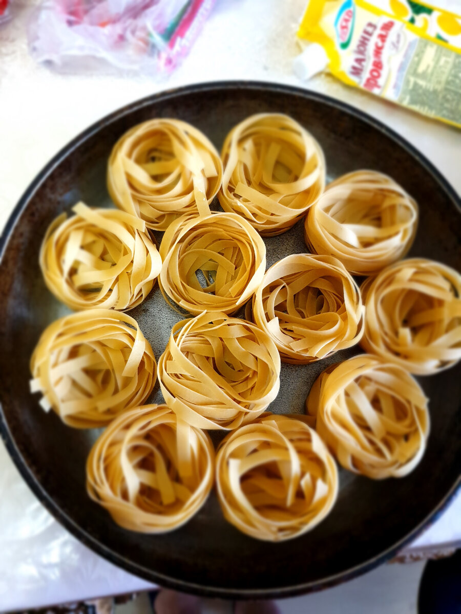 Противень смазать оливковым маслом. Берём гнёздышки у меня, Ролтон. И выкладываем на противень. Берём любой фарш, можно и куриный и говяжий у меня говяжий.В наш фарш протираем лук на тёрке добавляем специи,по вкусу соль, перец, и какие у вас есть дома специи. И хорошенько размешать Делаем из фарша большие фрикадельки. И вот таким образом ставим наши фрикадельки на гнёздышко. Теперь делаем соус:молоко и воду смешаем равных пропорциях. Добавить туда соль перец и специи,чеснок. Заливаем нашим соусом снизу, до половины гнездышек. Отправить в духовку на 30 минут. Теперь делаем соус, чтобы смазать сверху: майонез кетчуп. Специи. Достаём противень из духовки смазываем наши тефтельки сверху, и отправляем в духовку на 10 - 20 минут. Потом достаём наш противень ещё раз и сверху посыпать сыром. Вот что у нас получилось Приятного всем аппетита)