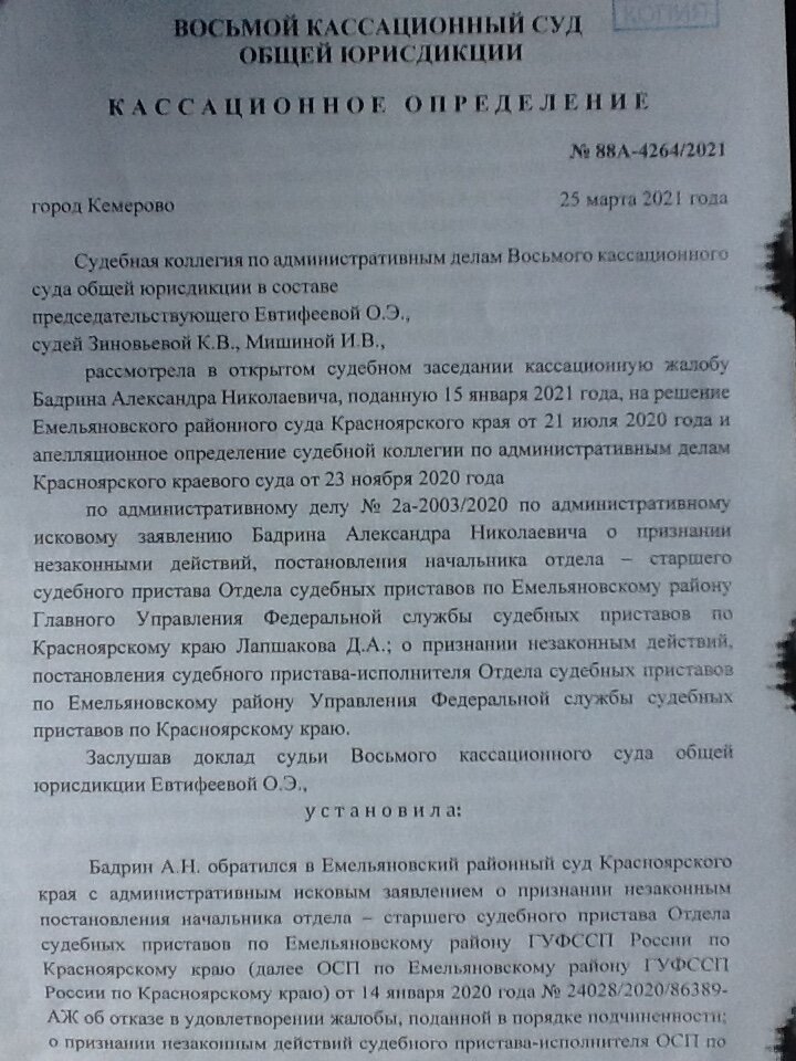 Уважаемы подписчик и посетитель моего канала хочу рассказать и документально подтвердить факт непосредственного участия в сговоре с Красноярским краевым судом кассационного суда общей юрисдикции и АО "Почта России".Непосредственные участники суда кассационной инстанции:Евтифеева О.Э.,Зиновьева К.В.,Мишина И.В. здесь кассационная инстанция ссылается на то что мне были направлены копии постановлений,что подтверждается реестром почтовых отправлений.Административный ответчик предоставил вот такие копии реестров простых почтовых отправлений вот по таким незаверенным копиям реестров простых почтовых отправлений кассационная инстанция установила,что мне направлялись копии постановлений.Причем если учесть что мной было подано заявление о розыске почтовых отправлений направленных на мое имя по реестру простых почтовых отправлений на что АО "Почта России" ответила невозможно установить,так как по реестру простых почтовых отправлений письма сдаются счетом,а не по фамильно,но кассационной инс