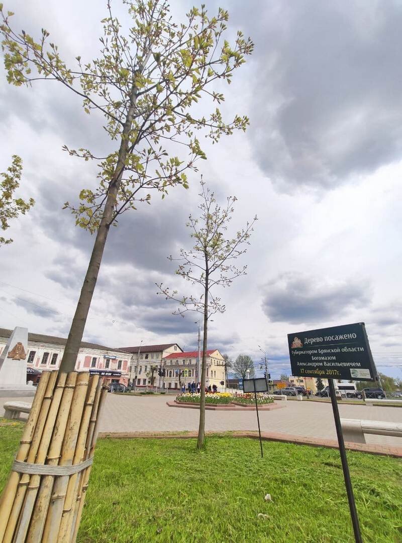 Посадка обреченных на верную смерть деревьев 12 мая в Саду Победы в центре Брянска заставила вспомнить о том, что где-то мы уже это видели. И точно! Губернатор Богомаз уже озеленял областной центр, причем, совсем рядом. «Брянский ворчун» отправился посмотреть, что стало с именным кленом губернатора и других вип-персон. 17 сентября 2017 года в Семеновском сквере на Набережной отцы города и области сажали клены. Каждое дерево было именным. Вот как старался губернатор Богомаз. А вот, что стало с его кленом. Дерево пока живое, но очень «тощее». По свидетельству главного редактора «Брянского ворчуна» Александра Чернова, клены мэра Брянска Макарова и экс-спикера областной Думы Попкова выглядят «упитаннее». Впрочем, может так и должно быть. Растет в Семеновском сквере и именное дерево Екатерины Лаховой. Самой сенаторши давно нет в Брянской области, но след она свой оставила. Совсем в ужасном состоянии табличка возле дерева, посаженного бывшим главой Брянска Александром Хлиманковым. Надеемся,