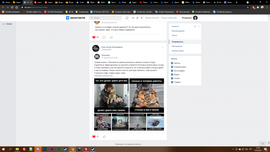 Автоматическое удаление лайков простым скриптом для браузера, чтобы начать свой путь лайканья сначала. Мы воспользуемся небольшим скриптом прямо в консоли браузера, чтобы удалить все лайки из ВК. При этом вам не нужно передавать никому свои пароли, так что это безопасный способ. https://vk.com/feed?section=likes Заодно посмотрите какую вы фигню лайкали! Это заняло время, но я реально опустился в самый низ страницы: var likes = document.body.querySelectorAll('.like.active');
